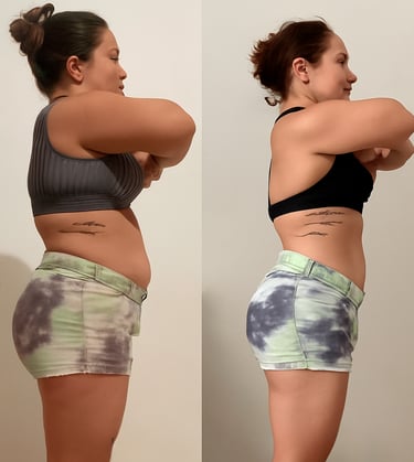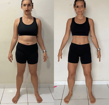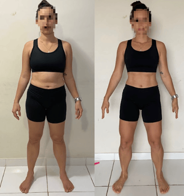 30 dias — Redução de medidas, cintura marcando mais e corpo mais definido.